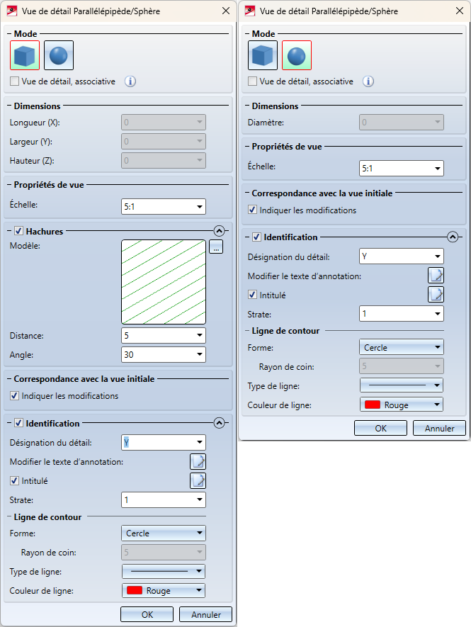Vues > Nouveau > Détail > Vue de détail Parallélépipède / Sphère