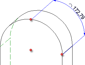 Cote d'arc, via centre/début/fin Cote une section d'arc. Déterminez le point médian, puis les deux points d'attache de la section de l'arc à coter. |