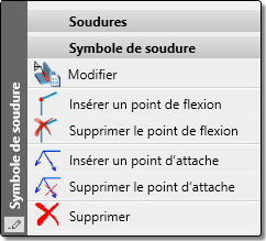- Pour modifier le symbole de la soudure, cliquez avec le bouton droit de la souris et sélectionnez dans le menu contextuel la fonction de votre choix.