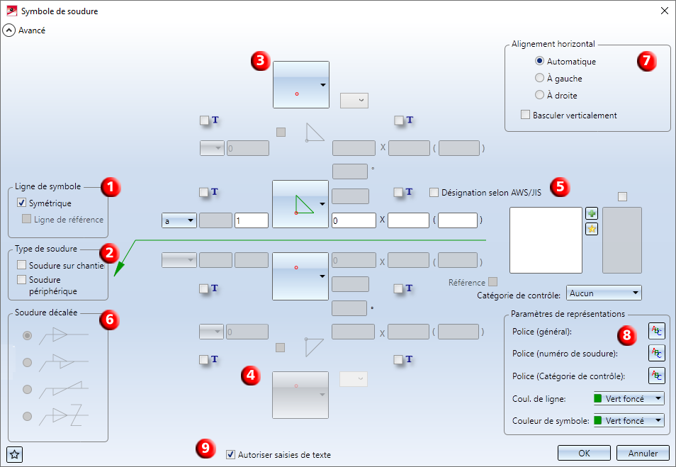 La fenêtre de dialogue Symbole de soudure s'affichera pour configurer la représentation symbolique. En cliquant sur le symbole