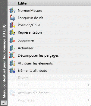 Sinon, vous pouvez également accéder à ces fonctions via le menu contextuel pour les boulonnages.