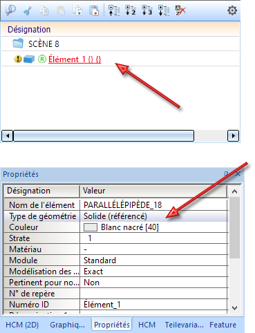 Pour les éléments référencés en externe, s'affiche dans la fenêtre Propriétés à l'entrée Type de géométrie le texte (référencé) après le type d'élément.