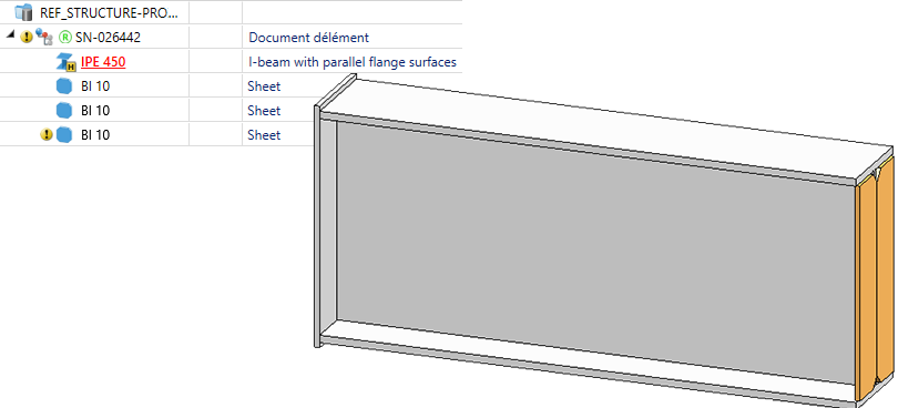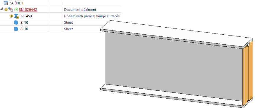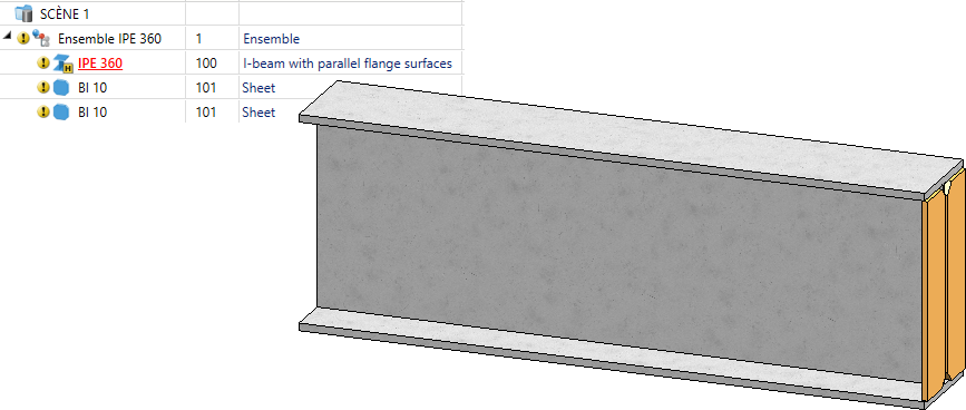Nous ajoutons maintenant au profilé sur la gauche une tôle et nous enregistrons la scène à nouveau avec transfert de la structure produit.