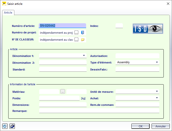 Fonctionnement de la fiche d'article pour les éléments et ensembles référencés