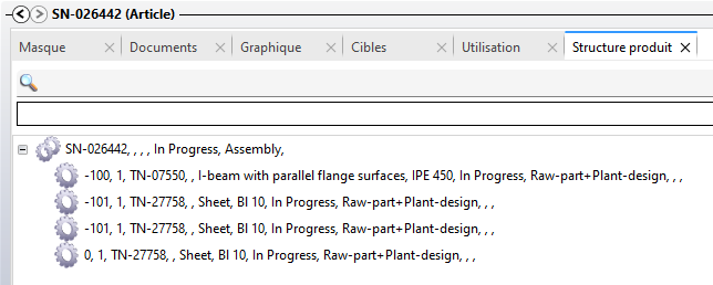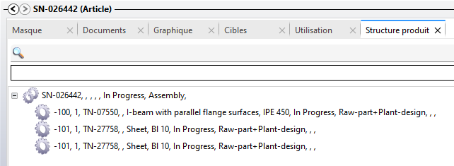 Dans HELiOS, les cases ayant été cochées, la structure produit de l'ensemble sera créée pour la première fois.