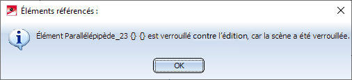 • Lorsque vous essayez de modifier un élément référencé dans un fichier en lecture seule, le message suivant s'affiche alors :