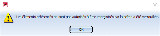 • Lorsque vous essayez d'enregistrer manuellement un élément référencé dans un fichier en lecture seule, le message suivant s'affiche alors :