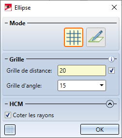 - Sélectionnez un point sur l'ellipse pour le deuxième rayon de l'ellipse. À la place du point, vous pouvez déterminer le rayon au moyen de la grille ou, en appuyant sur la touche espace, au moyen de la saisie de sa valeur.