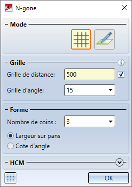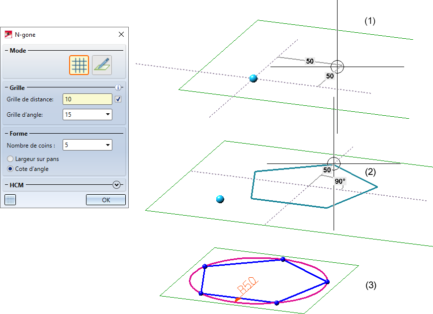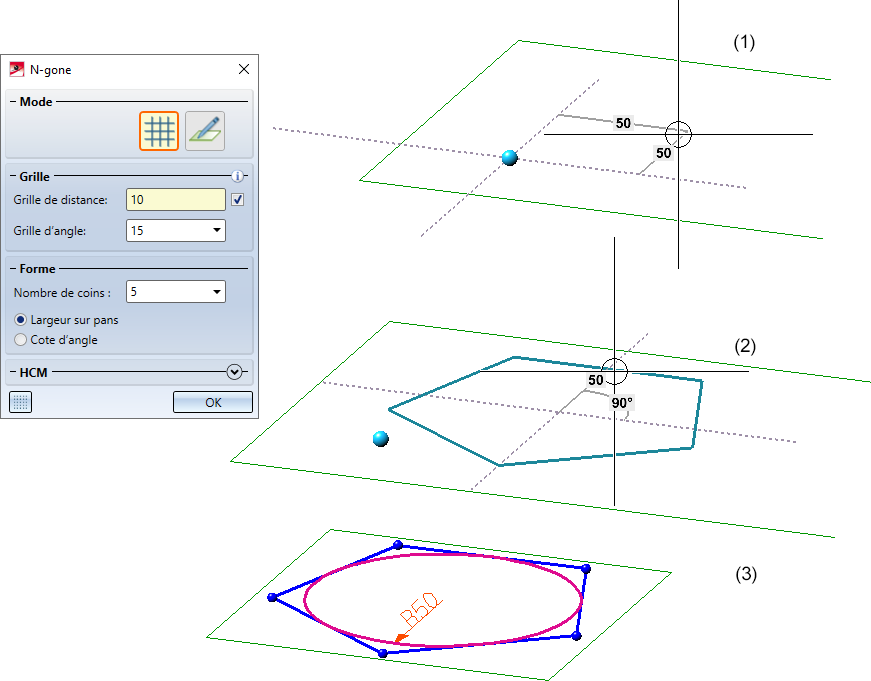 - Dessinez le n-gone en déterminant la largeur sur pans ou la cote de l'angle.