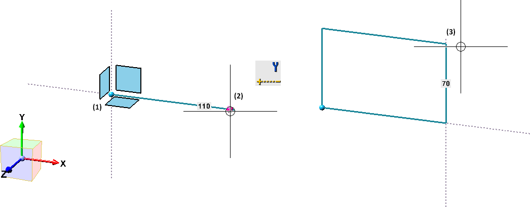 À l'aide de cette fonction, vous pouvez dessiner un parallélogramme en sélectionnant 3 points. Pour cela, l'outil d'esquisse s'ouvre.