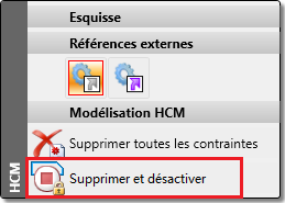 Si la désactivation ne doit s'appliquer qu'à l'esquisse active, cocher la case Supprimer et désactiver. Vous pouvez également utiliser la fonction correspondante dans le menu contextuel de l'ICN.
