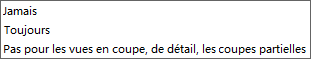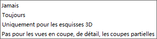 Ce paramétrage s'applique aux esquisses qui ont été créées via le PlugIn Enveloppes de bâtiment. Le paramètre Demander à chaque fois n'y est pas disponible. - Représentation d'esquisse pour vue en coupe partielle/en coupe/de détail