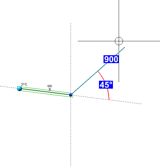 Lorsque vous travaillez dans des esquisses, en particulier lorsque vous dessinez des éléments auxiliaires pour une esquisse, différentes informations s'affichent sur la scène pendant le tracé, par exemple la longueur de la ligne, l'angle ou le rayon de l'arc.