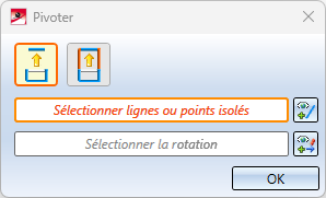 Cette fonction permet de faire pivoter les lignes-éléments ou les points isolés d'une esquisse. Après avoir lancé la fonction, la fenêtre de dialogue Pivoter s'ouvre :