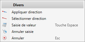 Si vous appuyez sur le bouton droit de la souris pendant la demande de saisie Premier point, ligne droite ou surface pour la direction, un menu contextuel s'affiche pour sélectionner l'axe.