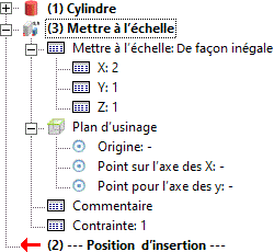 La mise à l'échelle est intégrée dans l'historique du Feature comme élément modifié sous l'entrée Mettre à l'échelle.
