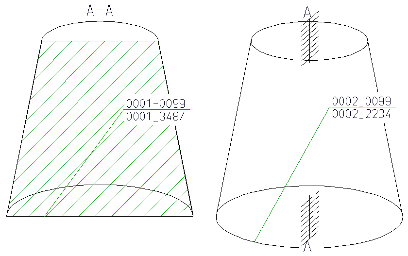 - Dans le Gestionnaire de Configuration, il est possible sous Paramètres système > Annotations > Annotation d'élément de définir si une ligne se trouvant derrière une annotation 3D devra être interrompue par les éléments et les hachures. Si l'option Interrompre les lignes de fond est cochée, les hachures et les lignes seront alors masquées. Cela s'applique aux types de représentation Modélisation en verre, Hidden Line, Hidden Line en pointillé et Ombré avec Hidden Line. Notez que cette option sera activée au démarrage de HiCAD et est cochée par défaut. Si vous modifiez ce paramètre, cela n'aura d'effet qu'au redémarrage du logiciel.