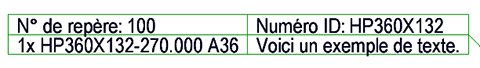 Si vous souhaitez appliquer aux blocs de texte d'une annotation un ordonnancement tabulaire, vous avez alors la possibilité, à côté de la sélection des polices de caractères HiCAD, d'utiliser des tabulations. Pour ce faire, il suffit de placer le curseur à l'endroit voulu du texte et d'appuyer sur la touche TABULATION