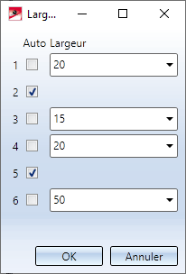 Si la case Auto est cochée pour la colonne, la largeur sera alors déterminée automatiquement en fonction du texte. Décochez la case si vous voulez indiquer vous-même la largeur de la colonne.