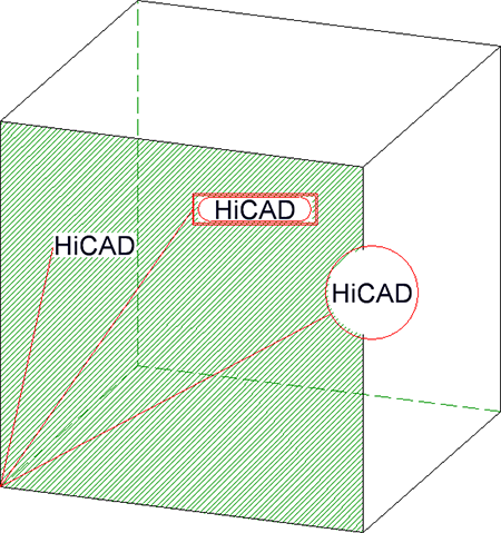 - Cette case permet de déterminer si les lignes situées derrière une annotation 3D doivent être interrompues par les éléments et les hachures. Cela est possible pour les types de représentation Modélisation en verre, Hidden Line, Hidden Line en pointillés et Ombré avec Hidden Line. Si la case est cochée, les hachures et les lignes sont masquées dans la zone de texte de l'annotation. Le cadre sélectionné est alors pris en compte.