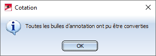 Par un clic sur Oui, les bulles d'annotation précédentes sont alors automatiquement converties dans le nouveau format. Un message s'affiche alors pour indiquer si toutes les bulles d'annotation ont pu être converties ou non, par exemple :