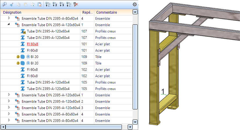 HiCAD offre la possibilité d'annoter en une seule fois une liste d'éléments , c'est-à-dire une sélection de plusieurs éléments. Pour définir une liste d'éléments, il suffit de sélectionner avec le bouton gauche de la souris un après l'autre les éléments de votre choix en maintenant la touche CTRL appuyée, soit sur la scène, soit dans l'ICN.