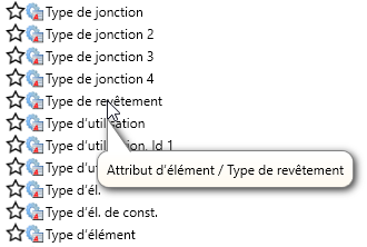 Les attributs souvent utilisés peuvent être identifiés pour un accès rapide comme favoris. Cliquez pour cela simplement sur le symbole à côté du nom de l'attribut. Le symbole