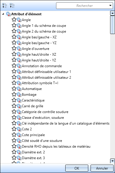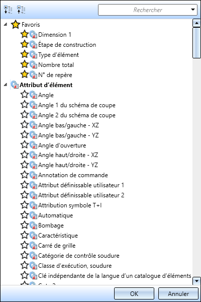 . Les attributs identifiés de la sorte seront intégrés dans la fenêtre de sélection sous Favoris. Si des favoris sont définis, la liste des favoris sera automatiquement développé en cliquant sur le bouton Attributs.
