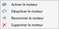 Par un clic droit sur le nom d'un moteur dans l'arborescence de la simulation, vous ouvrez un menu contextuel donnant accès à d'autres fonctions de modification du moteur :