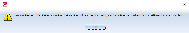 - Si la fonction ne peut procéder à aucune modification, par exemple parce qu'il ne se trouvent dans la scène que des solides sur le niveau supérieur ou parce que la fonction a déjà été exécutée sur la scène, apparaît alors un message correspondant.