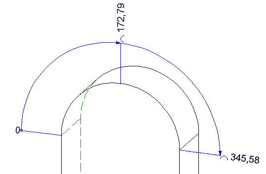Détermine la cote d'arc entre le point initial et final d'un arc. Les lignes d'attache sont parallèles à la bissectrice de l'angle imaginé du secteur du cercle et commencent aux points finaux de l'arc. La ligne de cote et l'arc sont concentriques. |