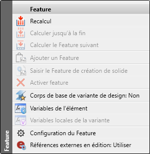 Pour spécifier le paramètre pour la spirale, cliquez avec le bouton droit de la souris sur l'historique (vide) du Feature de la spirale et choisissez dans le menu la fonction Références externes en édition.... Cochez ensuite l'option de votre choix. Le paramètre par défaut défini par ISD est Ne pas utiliser.