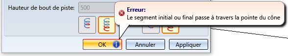 Avec Appliquer, la spirale est créée telle que l'aperçu la représente. Si en raison de votre saisie, elle est incohérente, cela vous sera signifié par le symbole au niveau du bouton OK. Veuillez alors corriger la saisie.