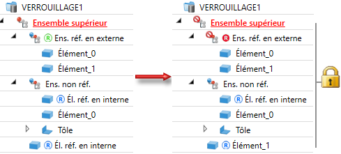 L'Ensemble supérieur se voit muni d'un verrouillage. Ici, seul l'Ens. réf. en externe sera verrouillé, c'est-à-dire ses éléments subordonnés.