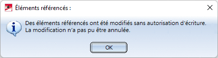 Les éléments qui portent dans l'ICN le symbole , c'est-à-dire les éléments qui viennent d'être modifiés et qui n'ont pas encore été enregistrés, ne peuvent pas être verrouillés. Un message d'erreur apparaît alors.