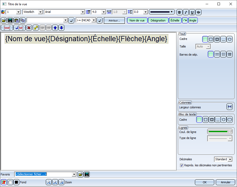 - L'édition de l'échelle dans les titres de vue déjà existants (créées avant la version 2400) garde le même mode de fonctionnement, c'est-à-dire que l'échelle ne sera représentée que si elle ne concorde pas à l'échelle principale.