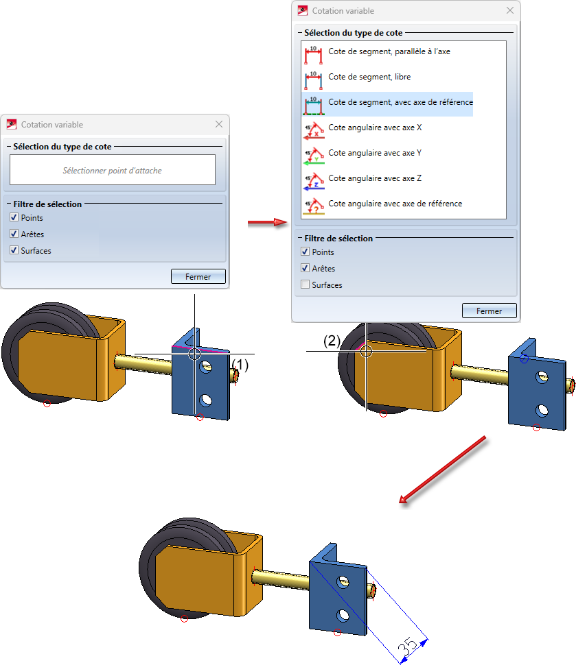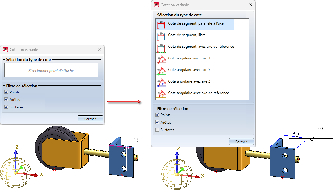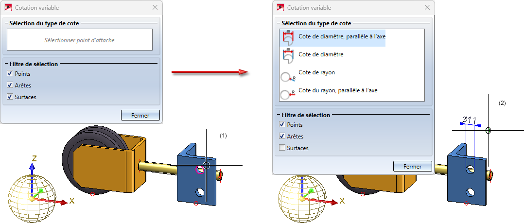 Cotation+Annotation 3D > Cote indiv. > Cotation variable