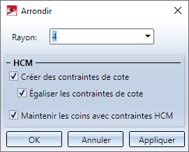 3. Arrondissez les angles avec un rayon de 4 avec la fonction Esquisse > Usiner > Arrondir .