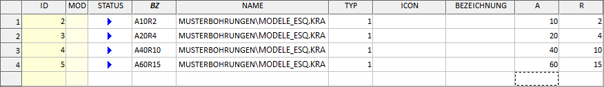 4. Le nouveau tableau contient les colonnes ID, MOD, STATUS et BZ.
