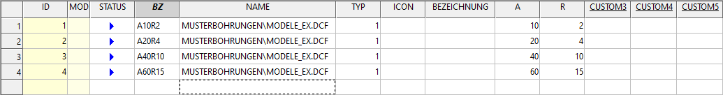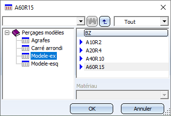 2. Ouvrez le tableau Perçages modèles et créez avec Outils > Tableau > Nouveau un nouveau tableau pour le perçage modèle, par exemple MODELE_EX.