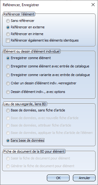 6. Enregistrez l'esquisse avec la fonction Référencer l’élément, Enregistrer, Dessin d’élément individuel , par sous le nom MODELE_ESQ dans le répertoire HiCAD : KATALOGE/WERKSNORMEN/MUSTERBOHRUNGEN.