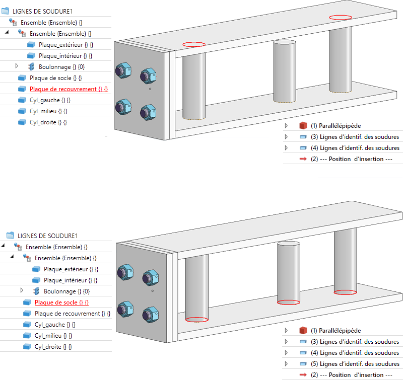 Standard 3D > Usinages normés > Perçage > Lignes d'identif. des soudures