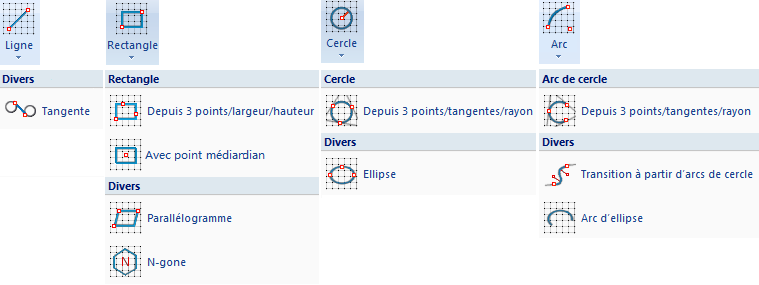 • Pendant une fonction d'esquisse, vous pouvez également activer d'autres fonctions d'esquisse. Par exemple, si la fonction Dessiner une polyligne est active, vous pouvez simplement activer la fonction Dessiner un rectangle pour insérer un rectangle dans la même esquisse.