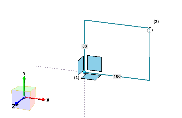- Sélectionnez le deuxième point d'angle à l'opposé. À la place de points, vous pouvez également, en appuyant sur la touche espace, saisir la distance X et Y par rapport au premier point (cf. aussi Saisie de valeur).