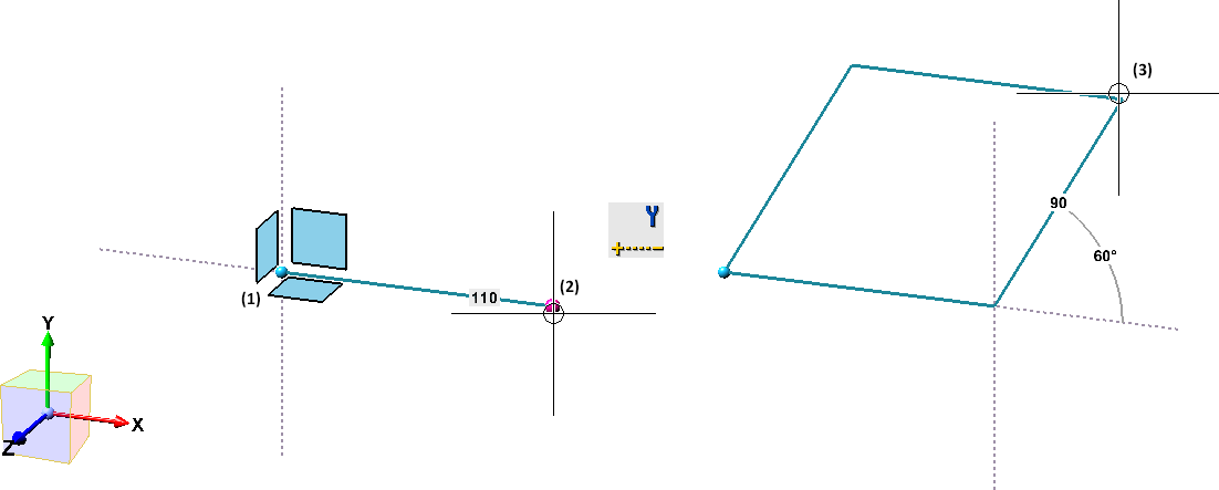 À l'aide de cette fonction, vous pouvez dessiner un parallélogramme en sélectionnant 3 points. Pour cela, l'outil d'esquisse s'ouvre.