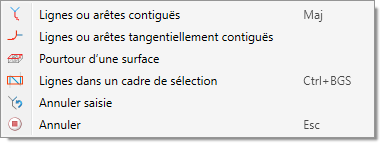 Identifiez, après avoir lancé la fonction, la ligne/arête de votre choix ou utilisez les fonctions du menu contextuel de sélection. Vous pouvez accéder au menu pendant le processus de sélection par un clic droit.