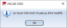 Si une modification du rayon n'est pas possible, par exemple parce que le rayon spécifié est trop grand, un message d'erreur correspondant s'affiche.