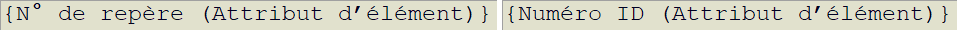 - Si vous souhaitez, lors de l'annotation d'un élément, utiliser les attributs de l'élément supérieur, vous pouvez faire précéder l'attribut de la chaîne de caractères %U. En répétant la lettre U autant de fois, les attributs des éléments qui sont situés autant de fois plus haut dans la structure seront utilisés, par exemple %U{Numéro de repère} ou %UU{Numéro de repère}.