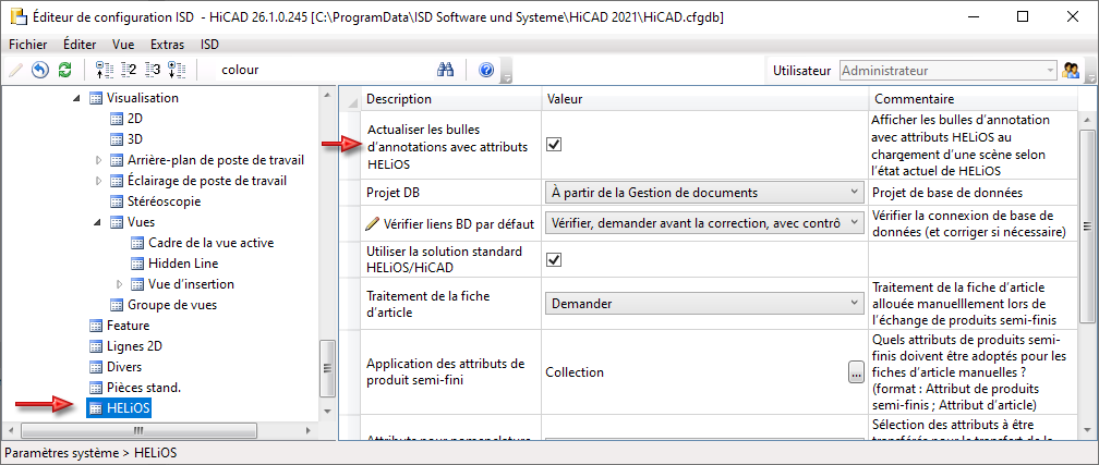 Lorsqu'une scène contient des annotations avec des attributs HELiOS, ceux-ci seront actualisés automatiquement au chargement de la scène. Ce mode de fonctionnement peut être désactivé dans le Gestionnaire de Configuration. Vous y trouvez sous Paramètres système > HELiOS la case Actualiser les bulles d'annotations avec attributs HELiOS.