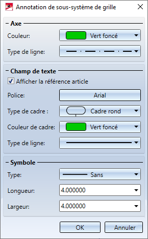 Les sous-systèmes de grille se laissent également annoter manuellement. Pour cela, utilisez la fonction Créer annotation de grille, individuel.